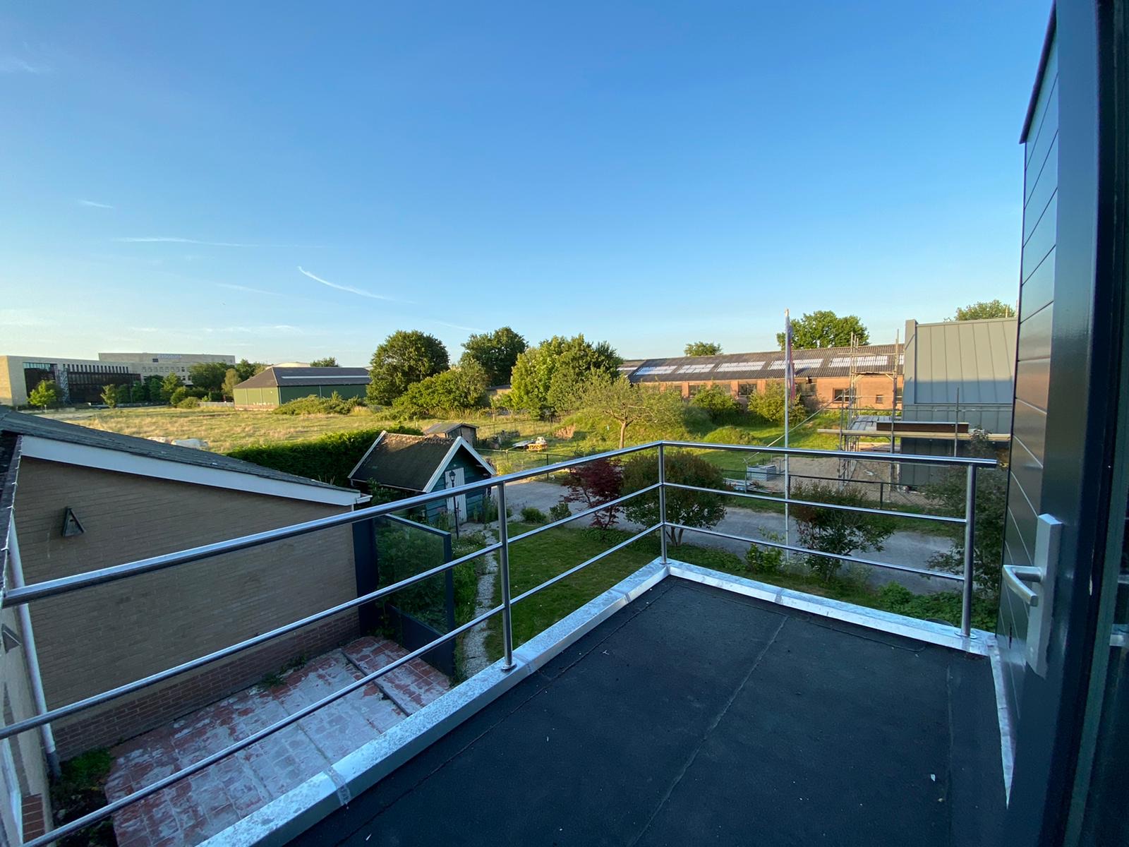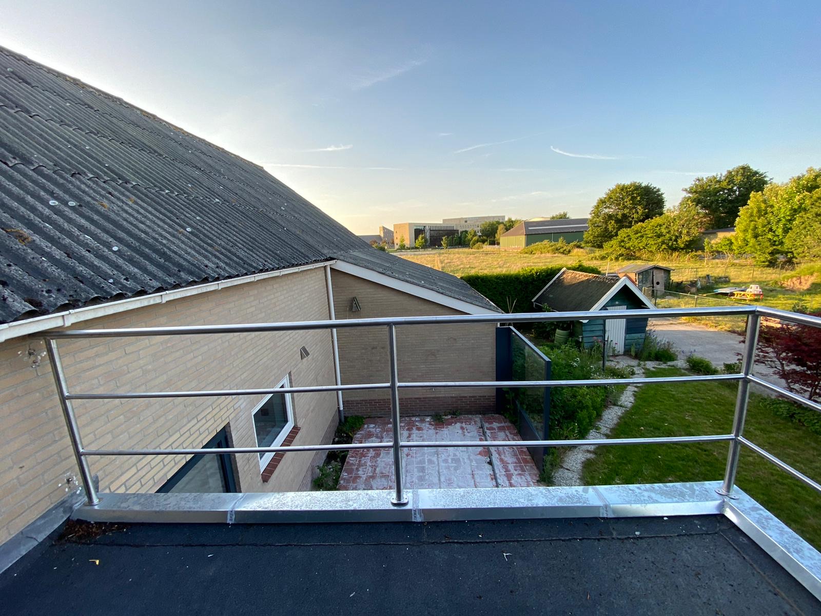 RVS railing voor een dakterras in Houten (Utrecht), uitgevoerd in geslepen RVS K320. Strak maatwerk met nette montage en een duurzame afwerking.